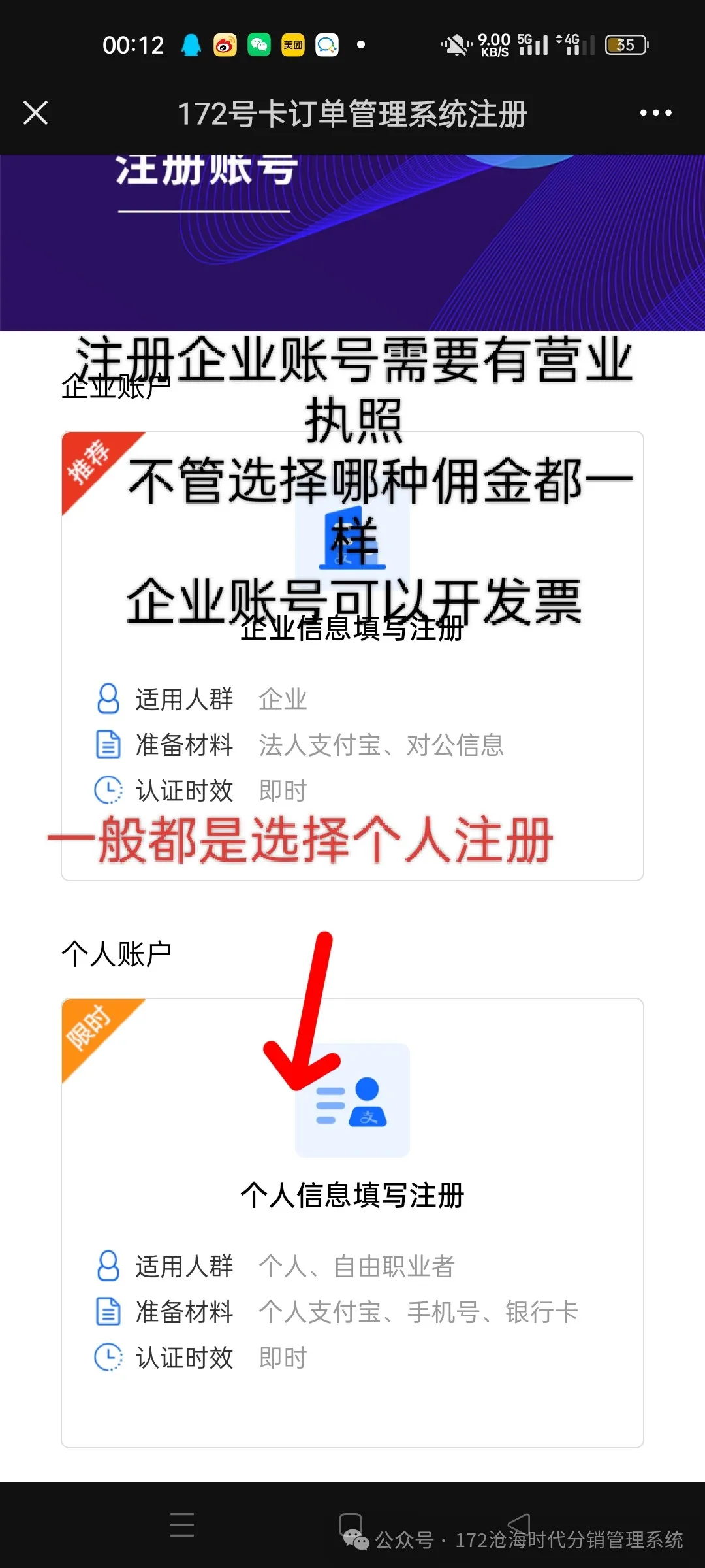172号卡平台的注册流程分为两种:扫码注册,写推荐人手机号注册(注:是否能成为一级代理取决于你扫的谁的码或者写的谁的手机号)注册的时候擦亮眼睛