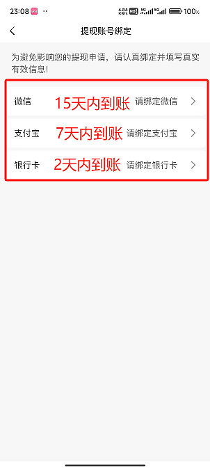 打开“我的”点击“提现管理”,即可对微信、支付宝、银行卡进行绑定。