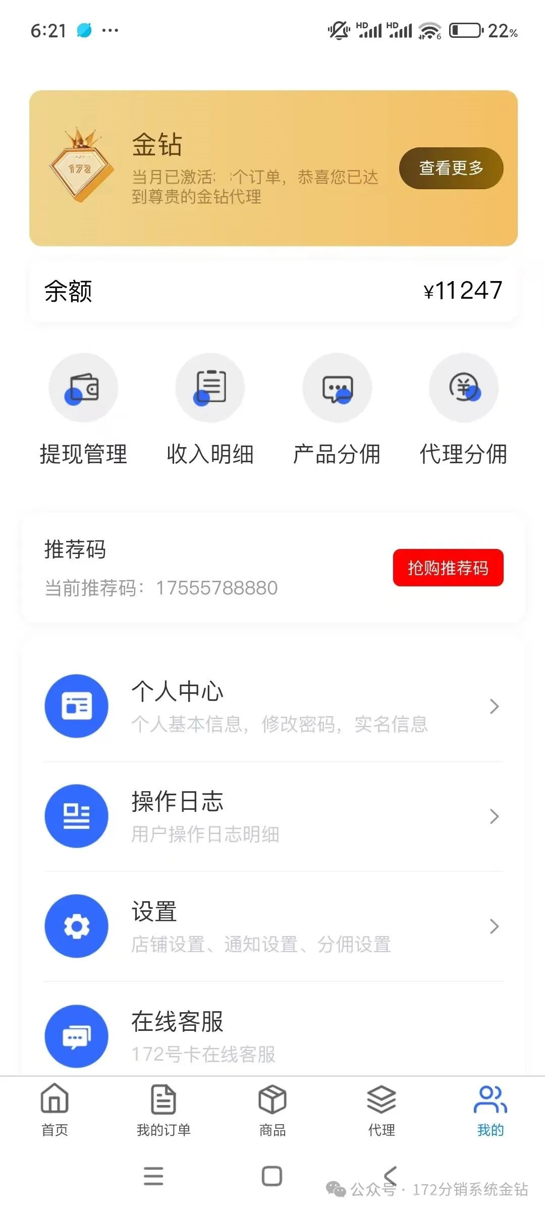 要确定自己在172号卡分销系统中的级别,你可以查看注册时使用的邀请码来源。如果你通过黑钻级别及以上代理的邀请码或二维码注册,你就是一级代理。如果使用的是一级代理的邀请码,那么你就是二级普通代理。级别直接影响你的佣金比例和权限,所以了解自己的级别很重要。如果有疑问,也可以直接咨询你的上级代理或联系平台客服确认。