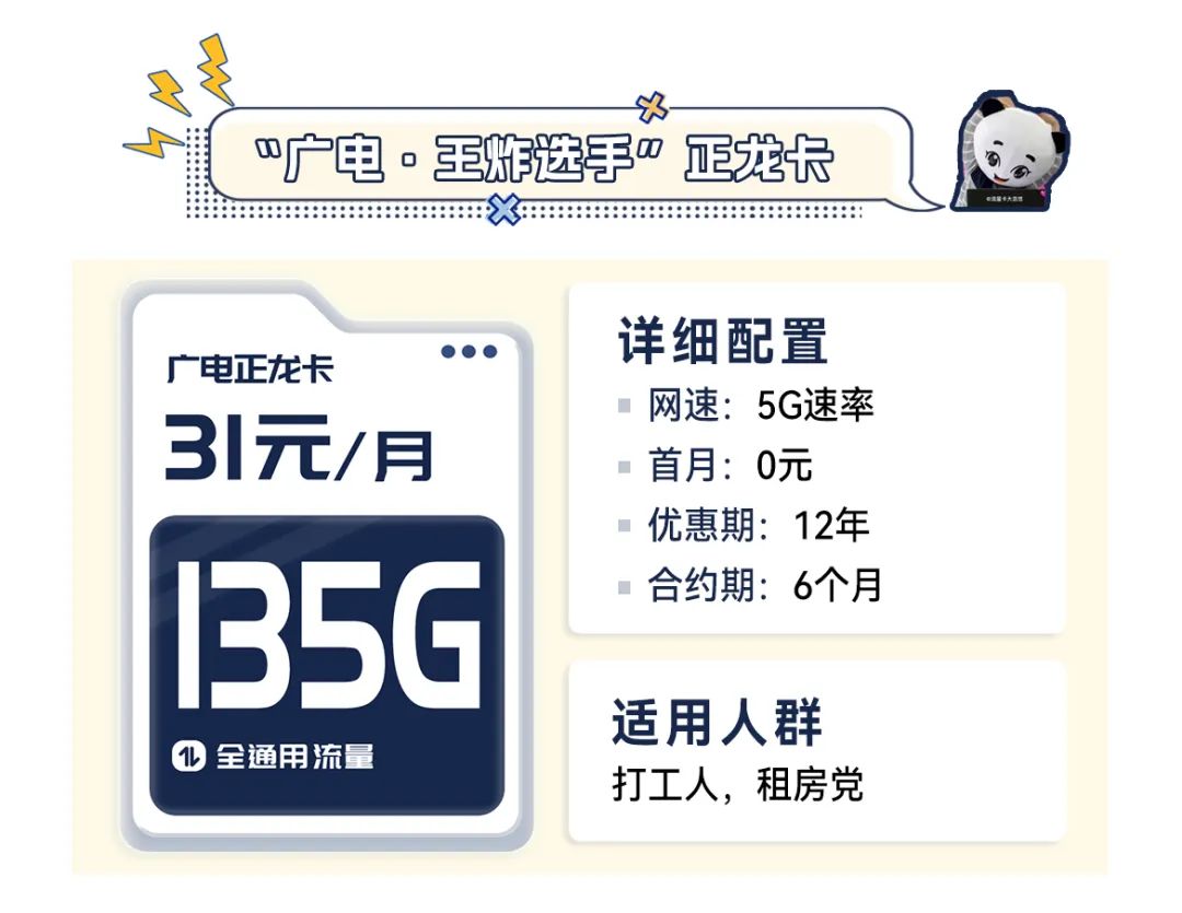 31块就能拥有135G的大杯流量,算下来,1G不到两毛钱,再加上独特的700MHz黄金频段,网速丝滑不卡顿~并且正龙卡还搭配了流量全结转、收货地即归属地以及能办副卡等小众配置。