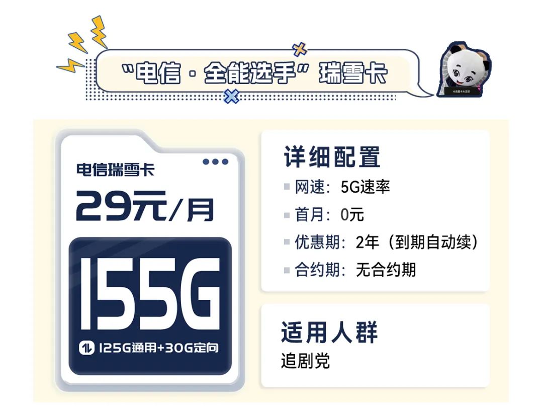 瑞雪卡最重要的一点是,套餐会每2年自动续订一次,也就相当于长期优惠,稍微懂点流量卡套餐的人,都知道凭这点入手绝对不亏。