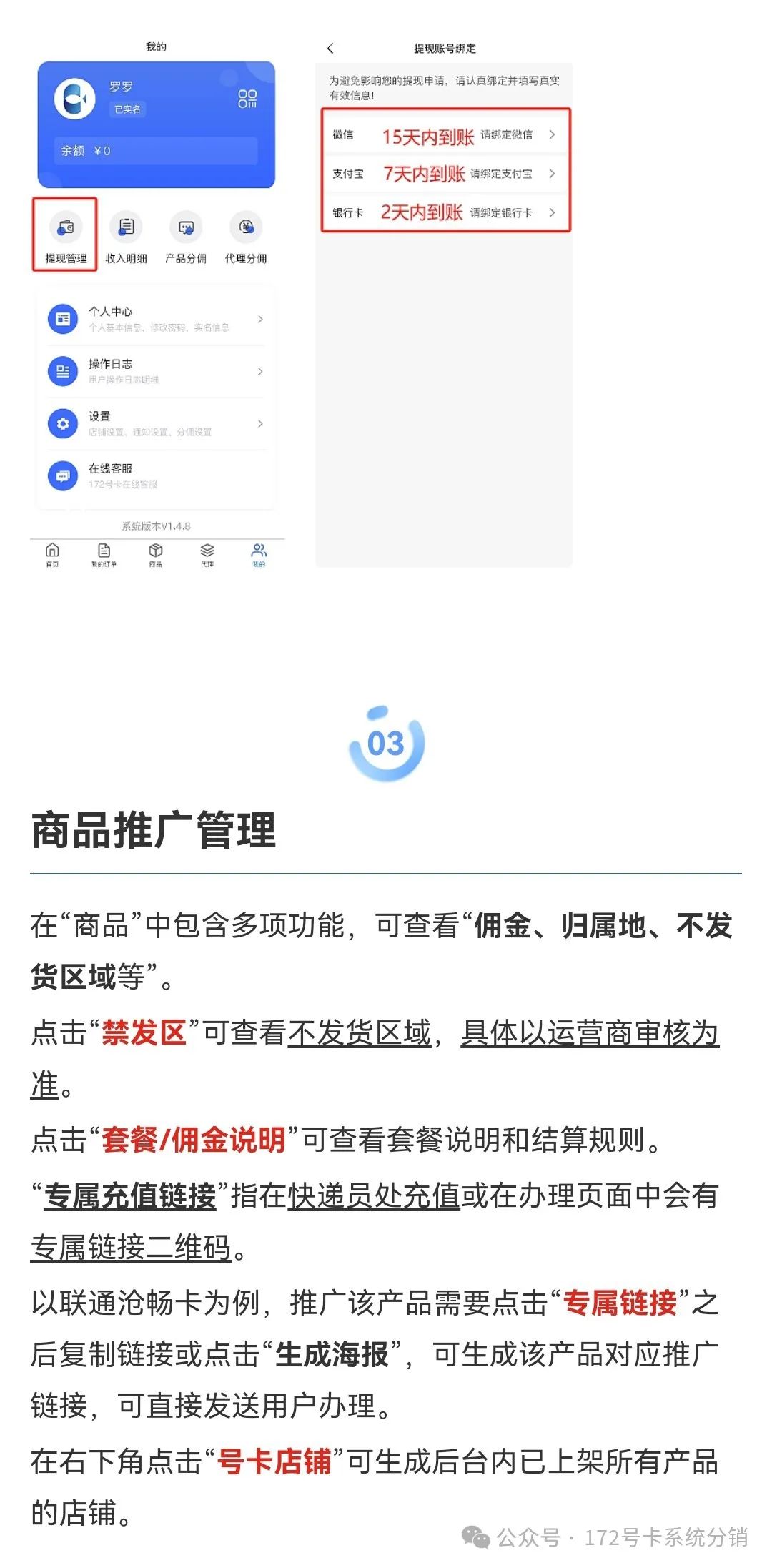 系统稳定流畅:自2023年推出以来,172号卡分销系统已成为号卡行业的领军者,具有高激活率和实时订单上传等优势。