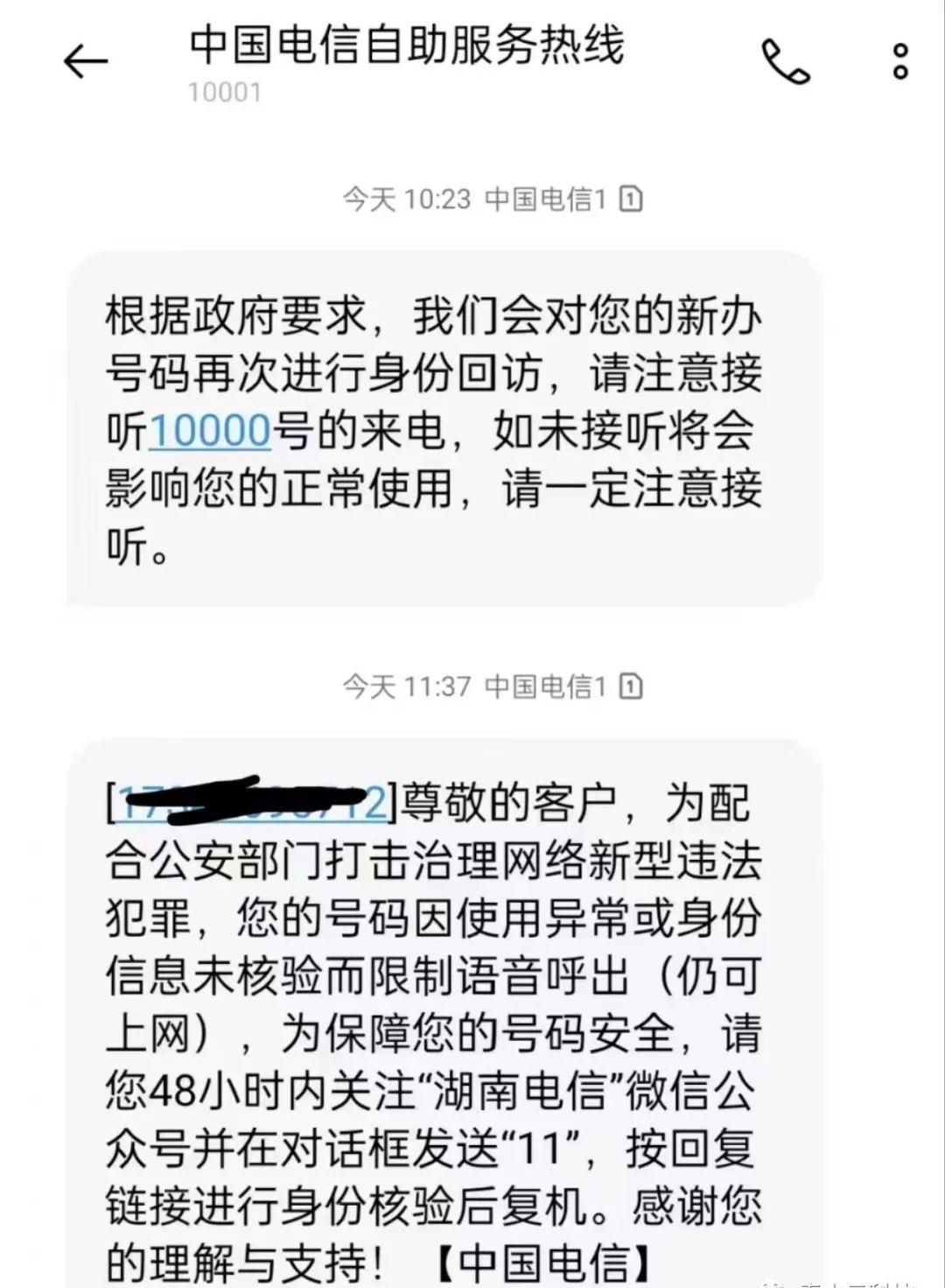 在暂停拨号功能前,他们会发短信提醒你进行二次实名。快看看你的短信里有没有这样的“温馨提示”吧!