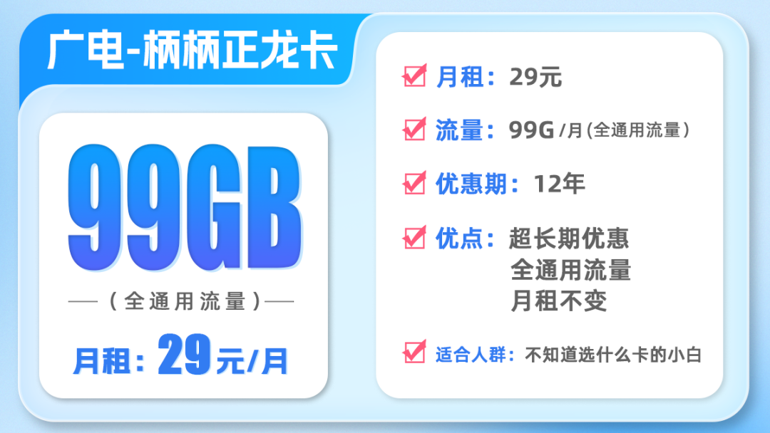 • 想选择29元大流量卡且想要长期优惠的同学可以选择第一张正龙卡。