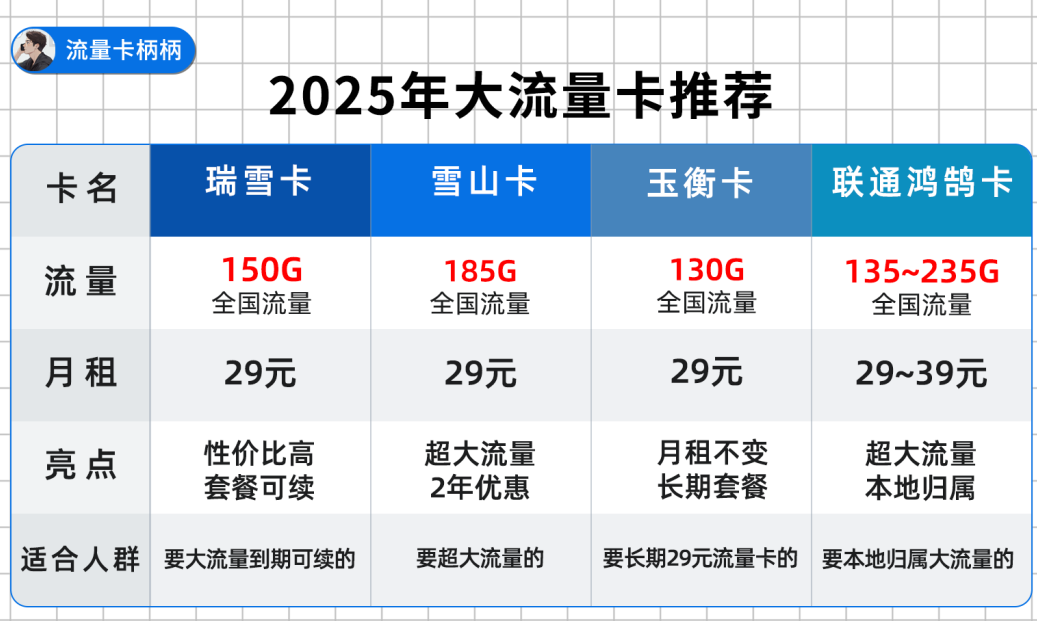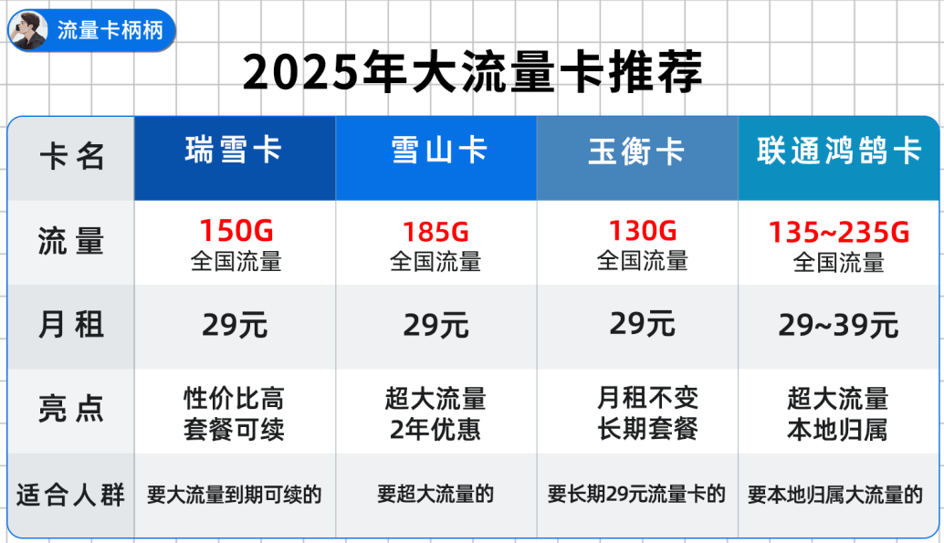这期柄柄推荐4款大流量卡: