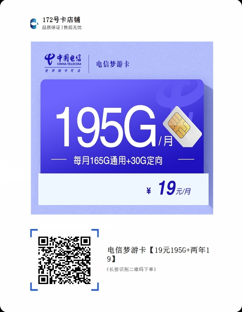 3️⃣ 认准"中国电信"logo+172号段(截图保存官方店铺首页)